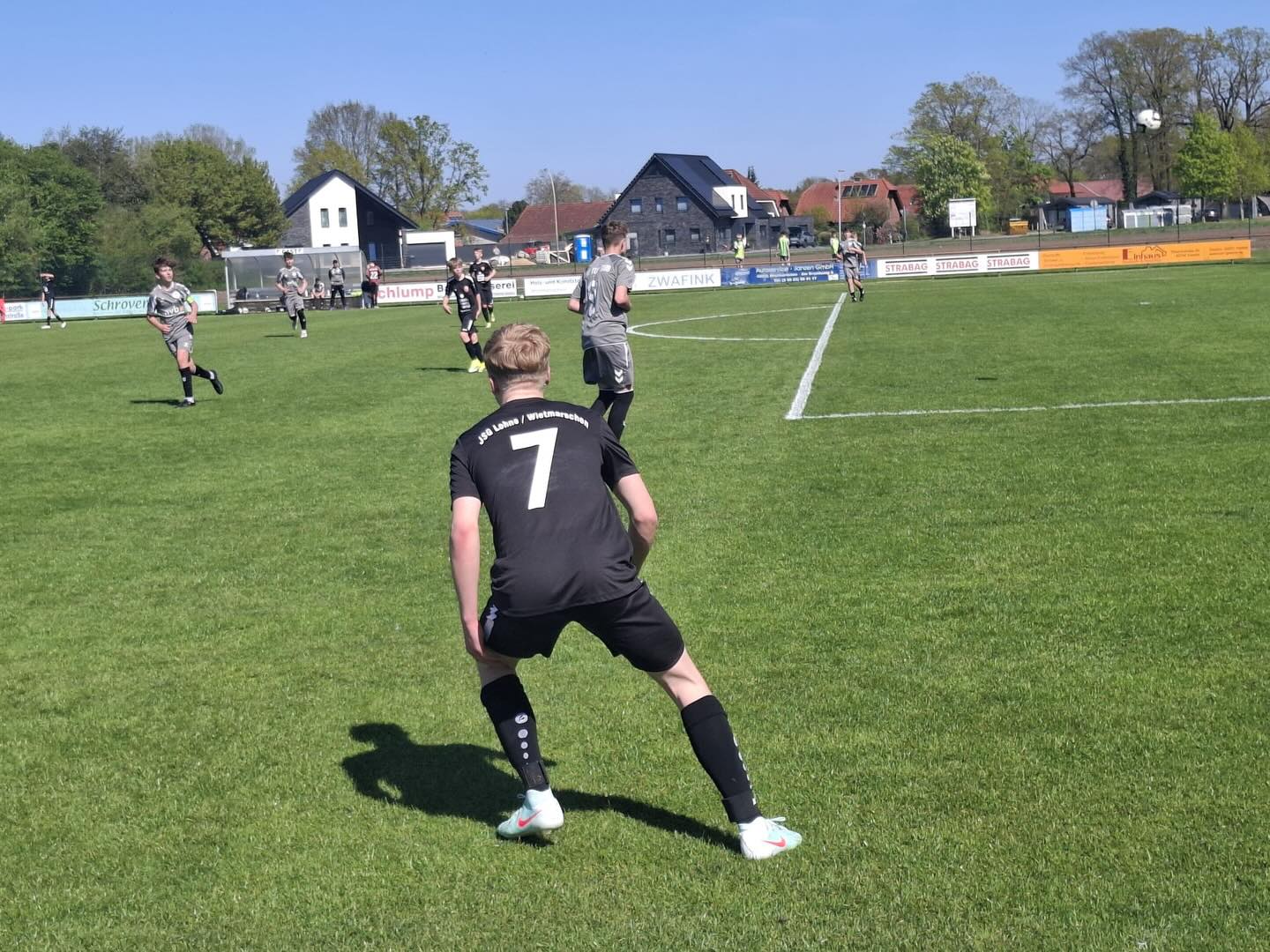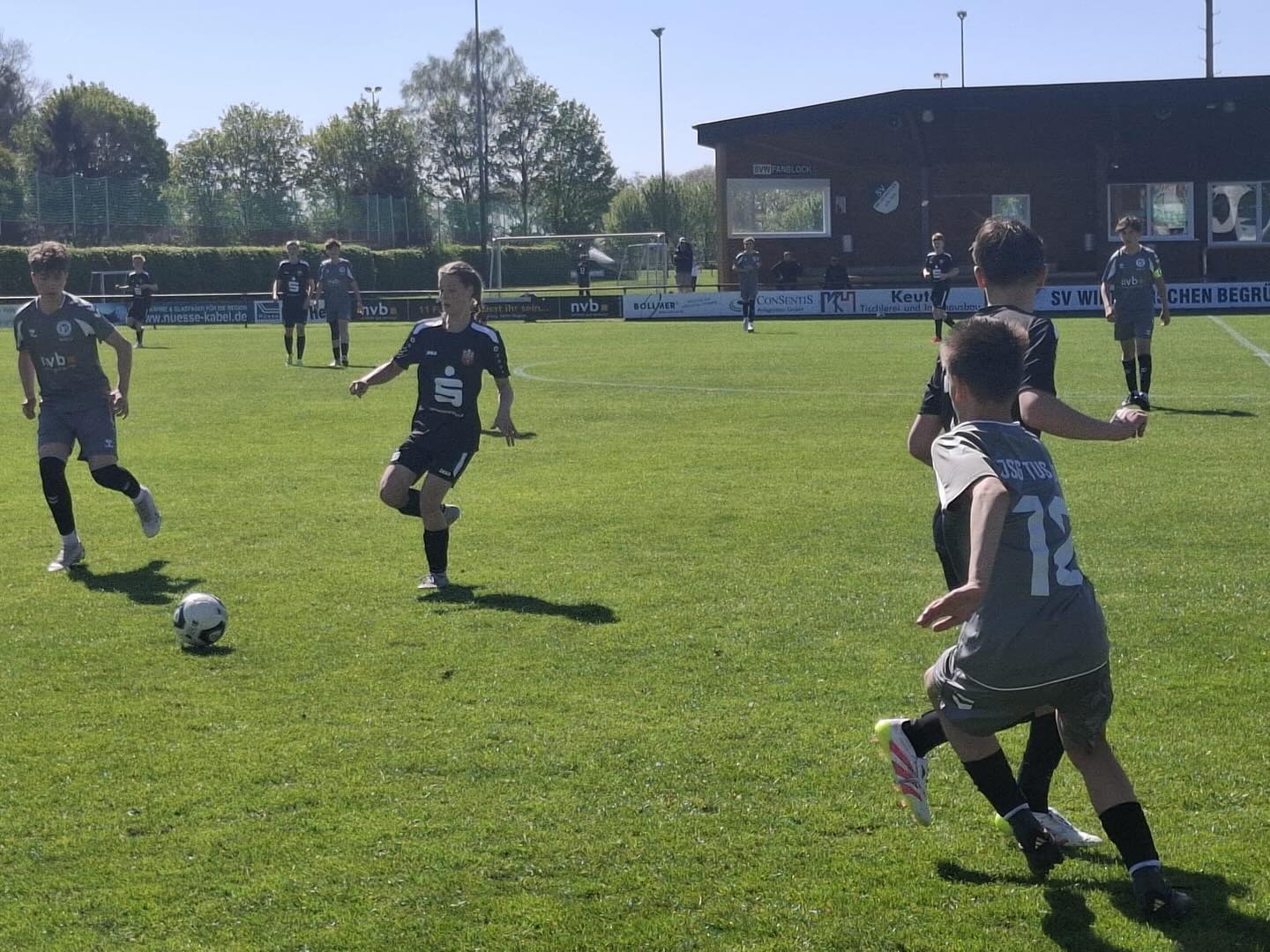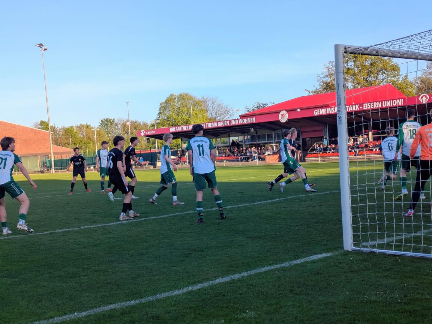 Nach einer Flanke von der linken Seite, legte Noah Schöttmer am zweiten Pfosten nochmals quer und Bent Egbers stand dort bereit, um den zu verwandeln. Dieses war die 1:0 Führung nach 13 Minuten für unsere JSG.
