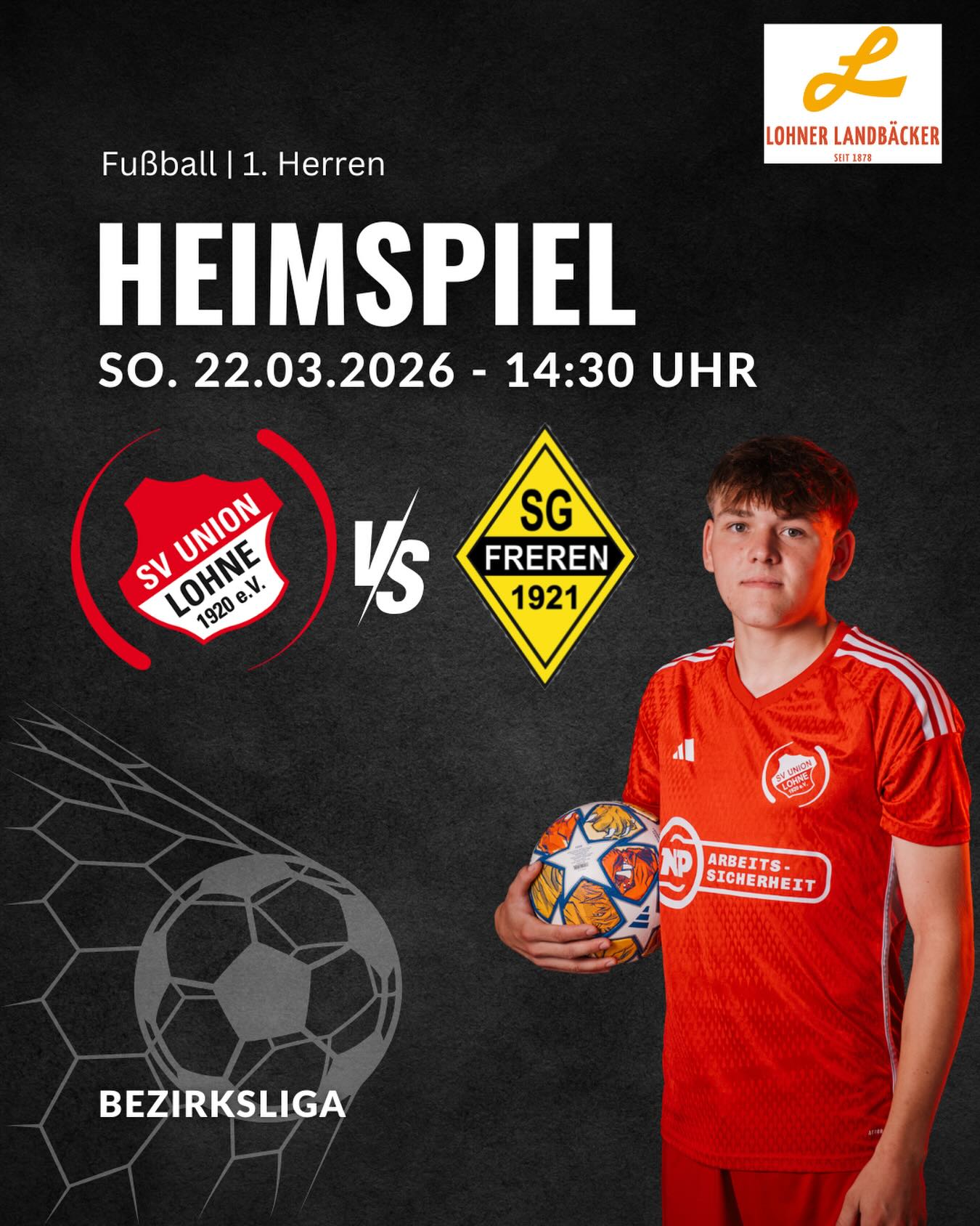 Am Sonntag, den 22. März 2026, empfängt der SV Union Lohne um 14:30 Uhr die SG Freren im Stadion an der Jahnstraße.