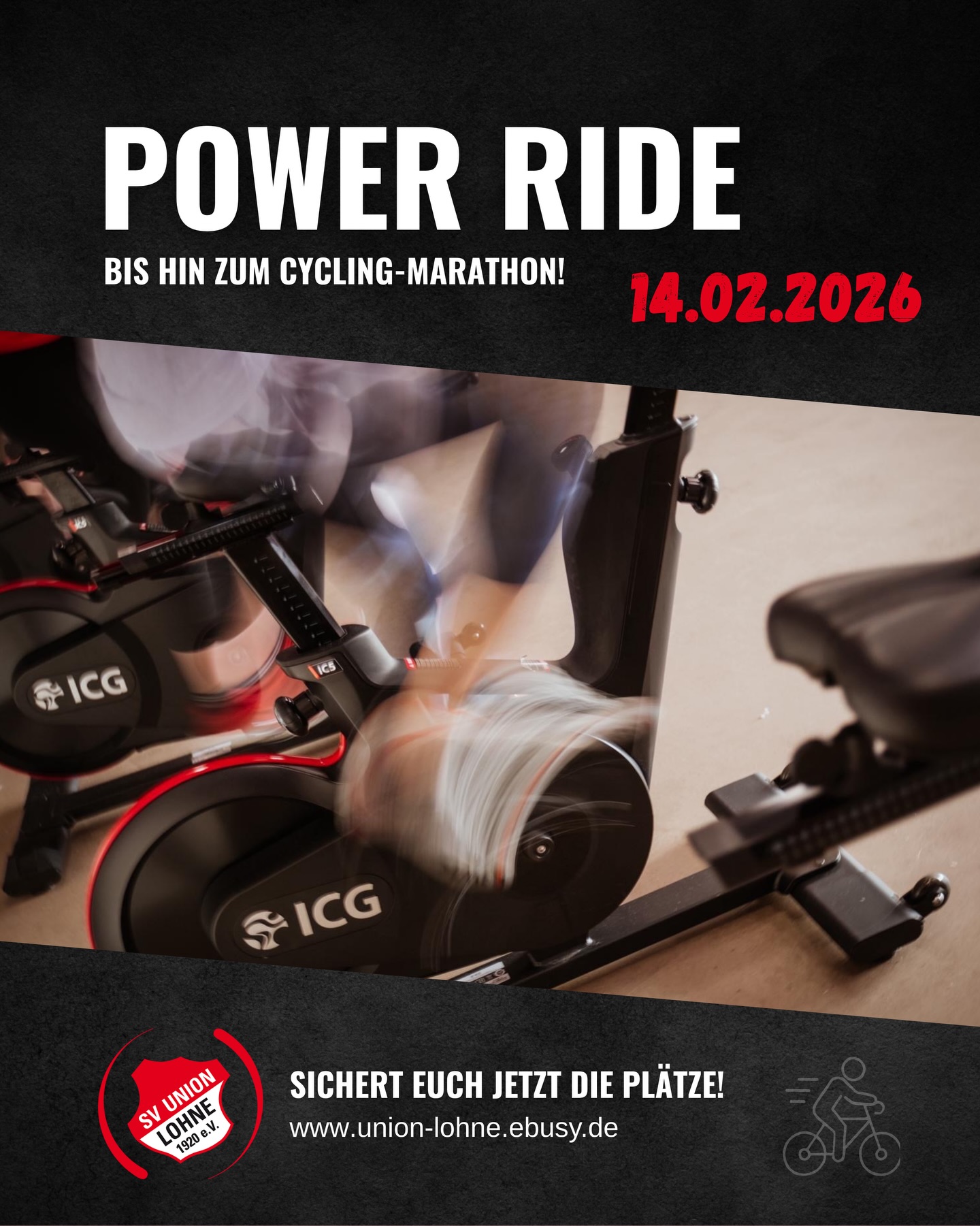 Egal ob ein Slot oder volle 4 Stunden Power – steig aufs Bike, fühl den Beat und gib alles!