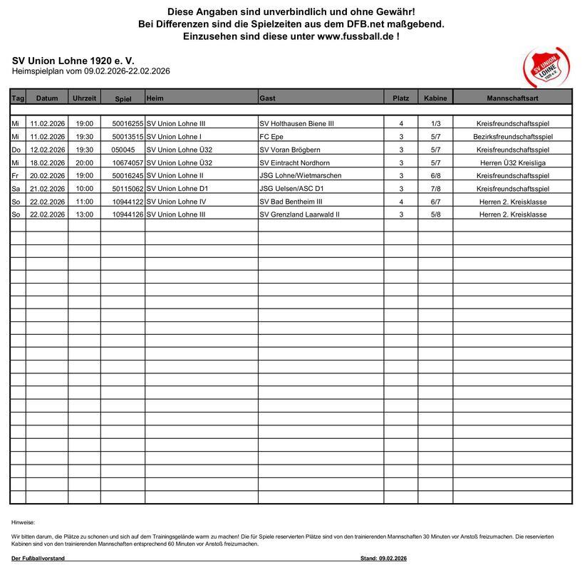 Auf diesen Seiten präsentiert sich die Fußballabteilung des SV Union Lohne 1920 e. V.